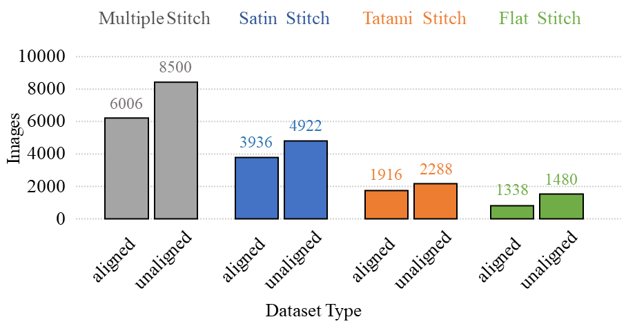 Convolutional neural networks (CNNs) are widely used for embroidery feature synthesis from images. However, they are still unable to predict diverse stitch types, which makes it difficult for the CNNs to effectively extract stitch features. In this paper, we propose a multi-stitch embroidery generative adversarial network (MSEmbGAN) that uses a region-aware texture generation sub-network to predict diverse embroidery features from images. To the best of our knowledge, our work is the first CNN-based generative adversarial network to succeed in this task. Our region-aware texture generation sub-network detects multiple regions in the input image using a stitch classifier and generates a stitch texture for each region based on its shape features. We also propose a colorization network with a color feature extractor, which helps achieve full image color consistency by requiring the color attributes of the output to closely resemble the input image. Because of the current lack of labeled embroidery image datasets, we provide a new multi-stitch embroidery dataset that is annotated with three single-stitch types and one multi-stitch type. Our dataset, which includes more than 30K high-quality multi-stitch embroidery images, more than 13K aligned content-embroidered images, and more than 17K unaligned images, is currently the largest embroidery dataset accessible, as far as we know. Quantitative and qualitative experimental results, including a qualitative user study, show that our MSEmbGAN outperforms current state-of-the-art embroidery synthesis and style-transfer methods on all evaluation indicators.