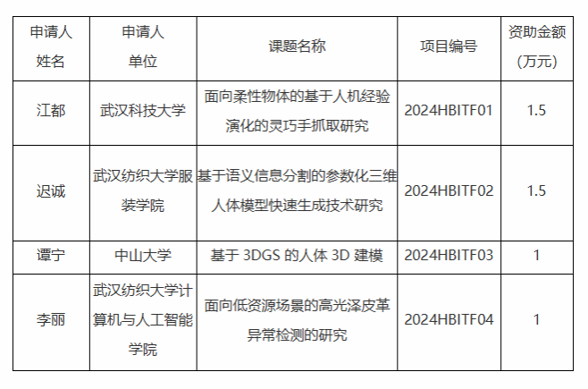 根据《纺织服装智能化湖北省工程研究中心开放课题申请与评审管理办法》,纺织服装智能化湖北省工程研究中心2024年度开放课题评审已圆满结束,感谢所有申请人对工程中心开放课题的关注。经本工程研究中心学术委员会专家审议,拟对以下4项开放课题予以立项资助。