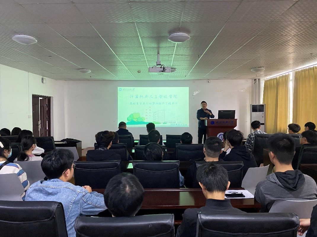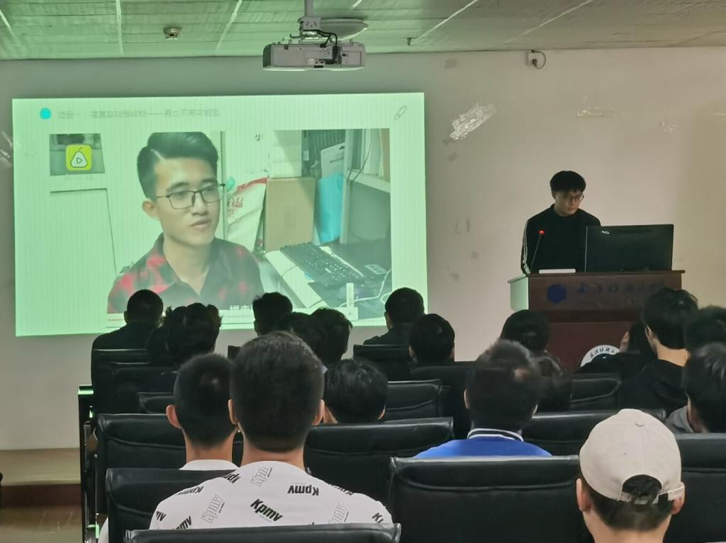 胡世杰同学以《物联网工程专业项目预览及相关比赛介绍》为主题展开讲解,他以三个视频向在座同学介绍了物联网项目在生活中的应用,强调了物联网中网络为核心。同时他分享了自己的学习建议,如课上获取知识很关键、要提前做好未来规划、对计算机的考研要深入了解等。