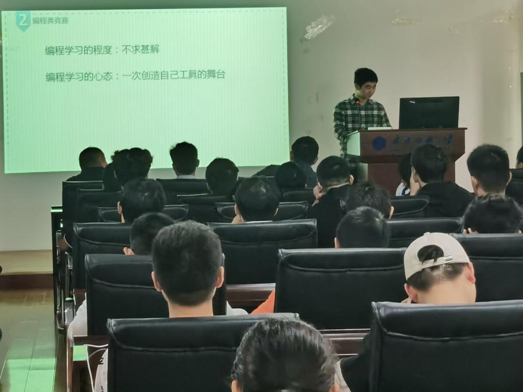 伍新琛同学以《浅谈ACM竞赛中动态规划的入门以及拓展》为主题分享经验,他提到ACM竞赛虽难,但是同学们能通过它学习编程,改进算法提升自己。他建议大一、大二的同学要明确目标为之前进,选择自己热爱的方向,多参加竞赛,朝着未曾发展的方向发展。