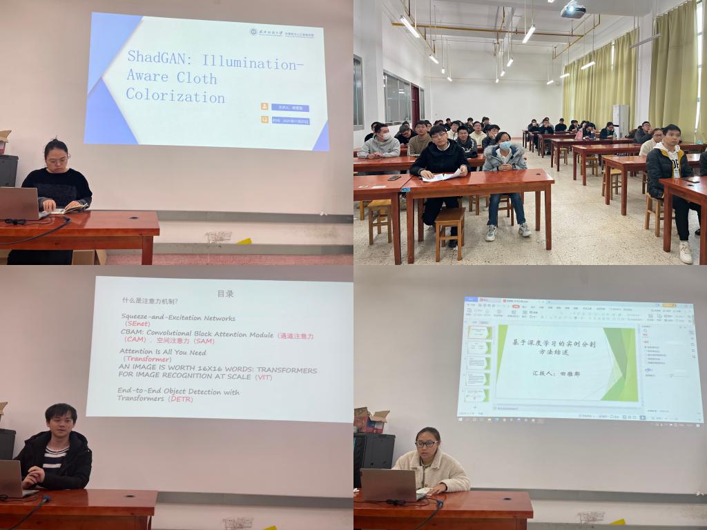 杨雪莲的报告题目为“Shad GAN: Illumination-Aware Cloth Colorization”。报告介绍了一种新的基于深度学习的全自动实例感知图像着色方法,此方法利用现有的模型对目标进行检测并从大规模数据中学习,在实例级和全图像级提取图像特征,并对特征融合进行优化以获得平滑的着色结果。
