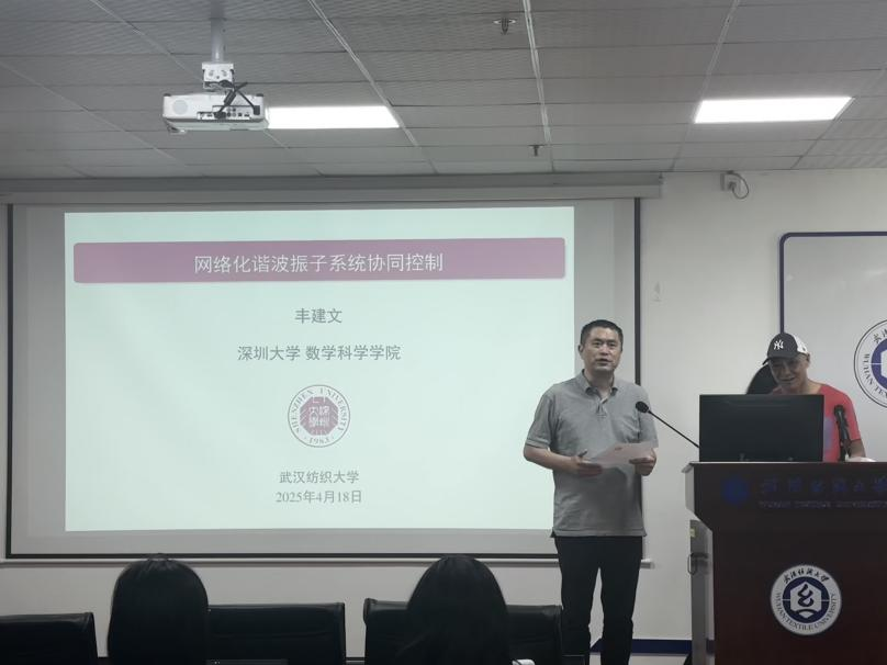 2025年4月18日上午9:30,Betvictor亚洲 在崇真楼南楼A4030会议室举行了学校第784期阳光论坛,邀请来自深圳大学数学科学学院丰建文教授做了“网络化谐波振子系统协同控制”的报告。本次论坛由Betvictor亚洲 副院长魏雄教授主持,Betvictor亚洲 院长胡新荣教授、部分教师及研究生参与。