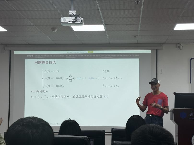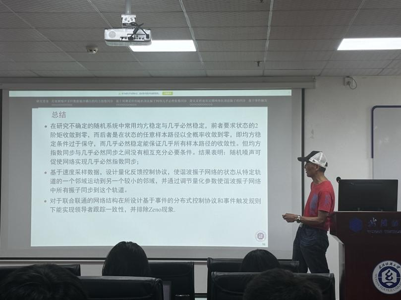 丰建文教授从多个研究方向切入,深入探讨了网络化系统协同控制与同步问题。他首先介绍了网络同步和多主体系统的一致性及噪声采样数据脉冲耦合的均方指数同步研究,该研究通过分析噪声环境下的采样数据特性,提出了有效的脉冲耦合策略,实现了系统的均方指数同步,为复杂环境下的网络控制提供了理论支持。同时,丰教授介绍了基于周期采样的随机谐波振子网络指数同步的研究成果。