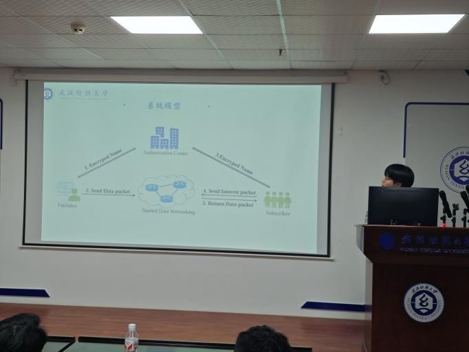 史盛源同学分享的主题为“Private, Efficient, and Flexible: Protecting Names Based on Message-derived Encryption in Named Data Networking”。命名数据网络被认为是下一代互联网的一种新架构,它通过名称传递内容。然而,人类可读的名称可能会泄露用户的隐私。现有的解决方案侧重于加密以保护隐私,但它们在一个发布者和多个订阅者的情况下既无效,也不成功地支持前缀匹配。为了能够在哦一对多场景下支持前缀匹配,我们提出了一种高效灵活的具有隐私保护的名称方案,该方案将消息驱动加密与Bloom Filter相结合。首先,利用消息驱动加密保护姓名隐私,从而支持高效、安全的加密姓名匹配。其次,将每个名称分成多个组件,然后分别对每个组件进行加密,以支持灵活的前缀匹配。最后,为了提高名称匹配的效率和准确性,提出了带有随机数的布隆过滤器技术。安全性和性能分析表明,该方案在保护姓名隐私的同时,有效地提高了数据匹配的效率和准确性。