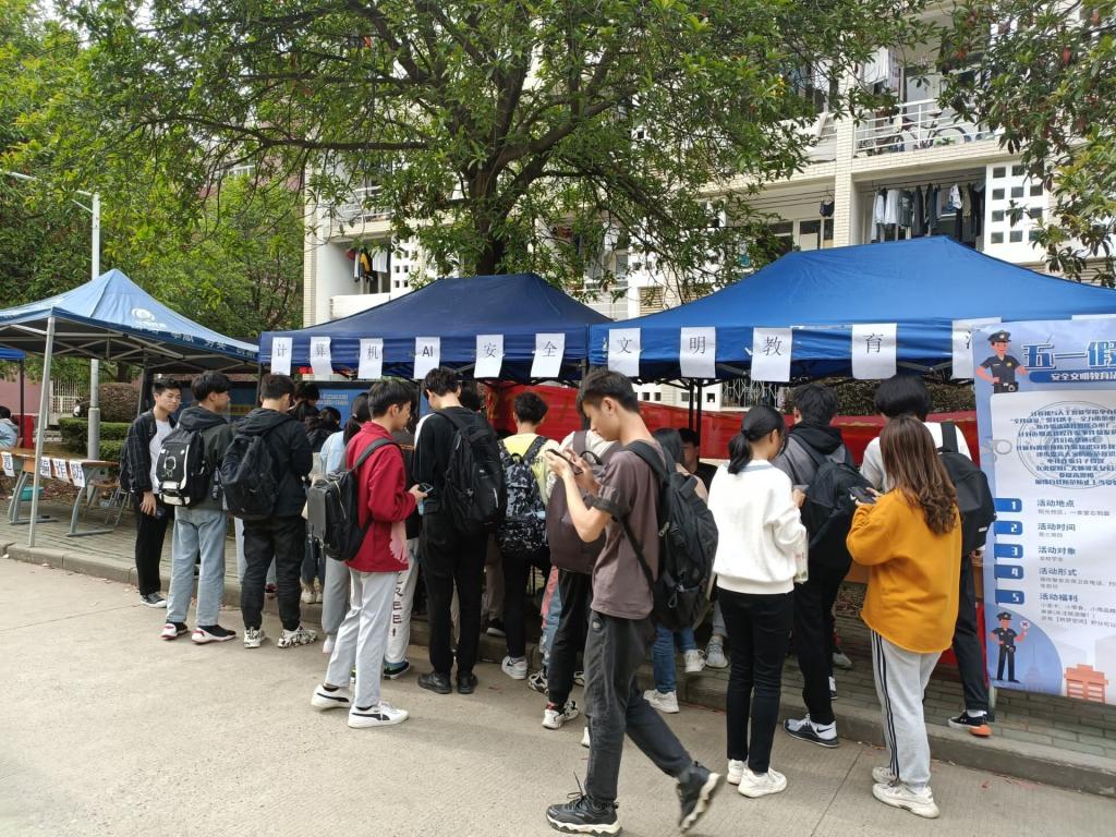 4月28日至29日,辅导员喻仪组织2020级学生开展五一假期安全教育活动之防范电信诈骗线下摆点活动,呼吁学生关注“武汉市反电信网络诈骗中心”等相关公众号,了解电信网络诈骗的特点,向广大学生普及防范电信网络诈骗的方法。