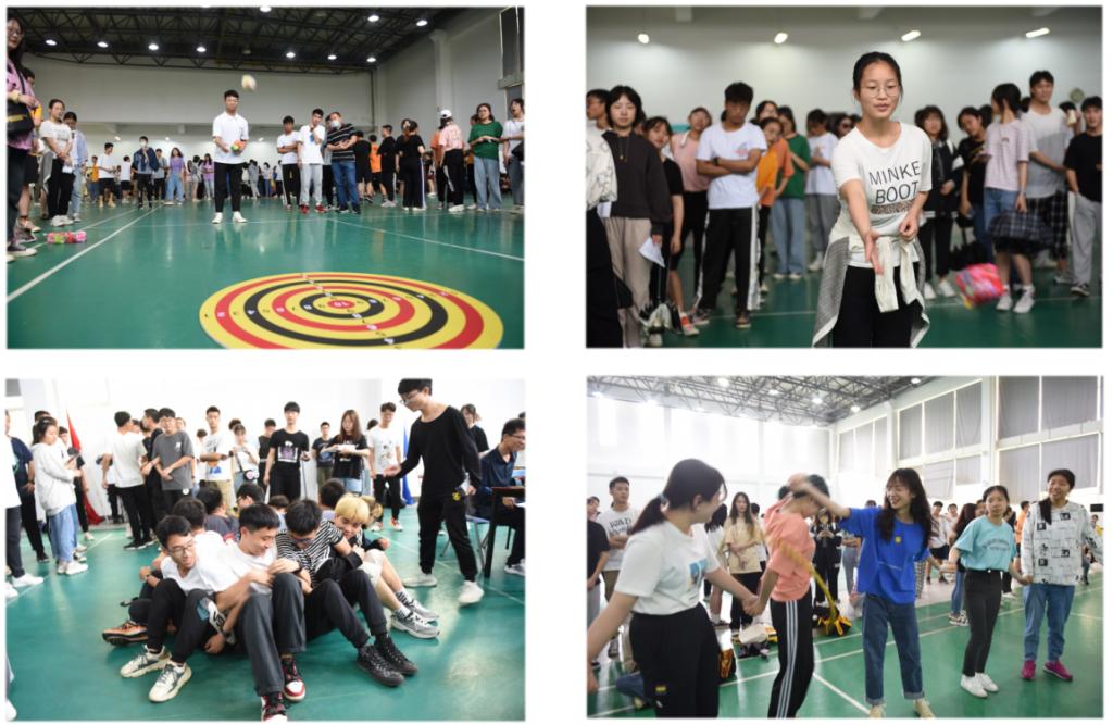 启动仪式结束后,趣味运动会正式开始。现场气氛热烈,各学院参赛队员在赛场上尽情释放着活力。个人项目“沙包投准”中,同学们集中注意力,以精准的投掷赢取高分;在“记忆力大比拼:对号入座”中,让同学们了解各领域的名人,拓宽了知识面,加深了同学们对各个专业的理解。在各项团体赛事中,同学们也表现出了空前的凝聚力。在“八人九足”中,队员们相互配合,共同前进,在一声声整齐响亮的口号声中冲向终点;在“坐地起身”与“呼啦圈传递”中,同学们也在激烈的竞争中展现着团结协作的精神;在“你划我猜”中,各参赛队伍通过队员之间的默契配合精准又快速地猜出任务词;在“乒乓球接力”项目中,各参赛队员们小心谨慎又健步如飞……项目的趣味性让同学们进一步认识自己、发现自我,收获自我感悟。