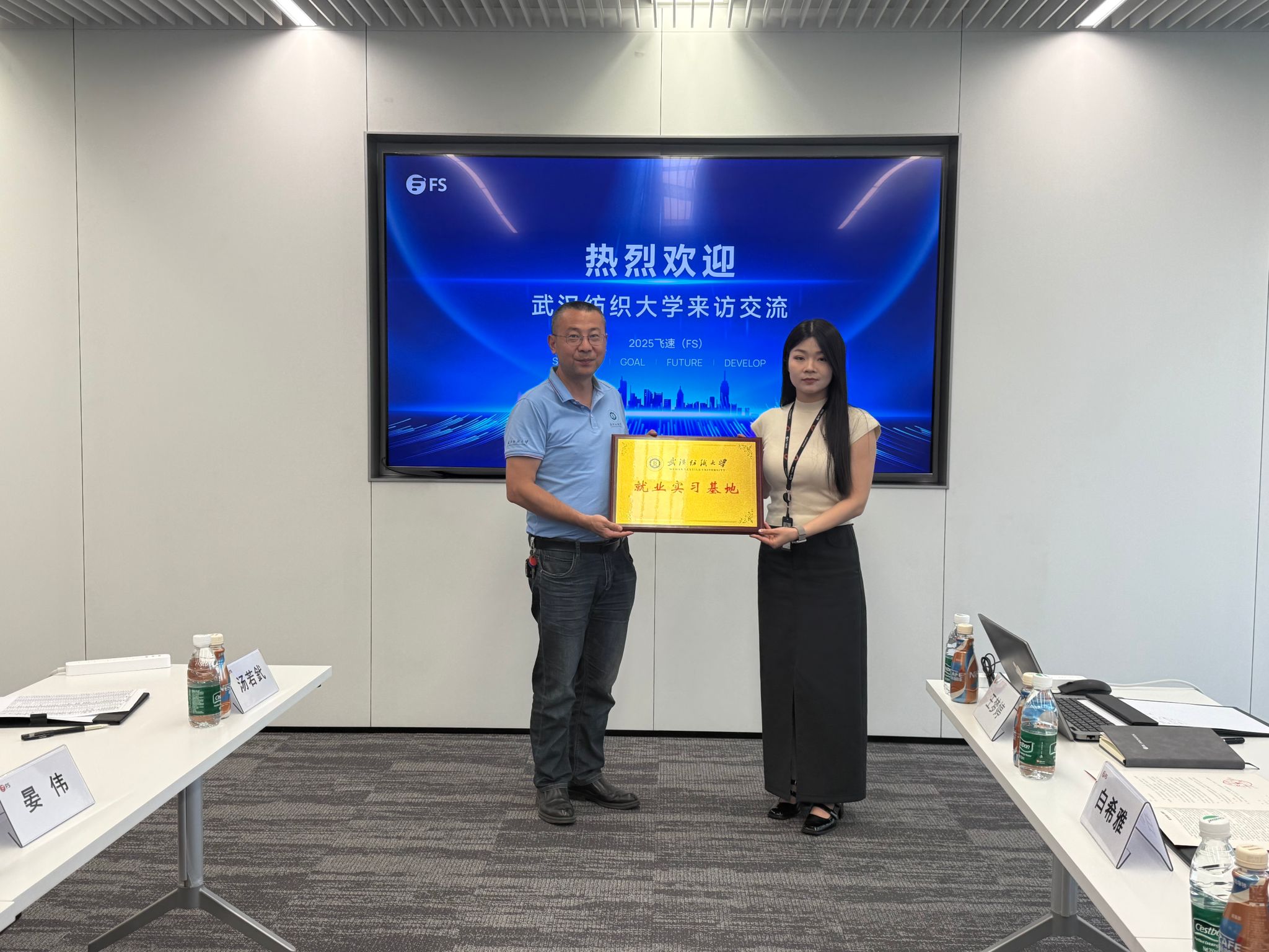 随后,在校企交流环节,晏伟、汤若釴、张栋同飞速创新技术股份有限公司人力资源经理白希雅、Betvictor亚洲顾问李雪芳及校招团队成员就人才培养与产学研合作开展深入交流,并在该公司设立“就业实习基地”,完成授牌仪式。