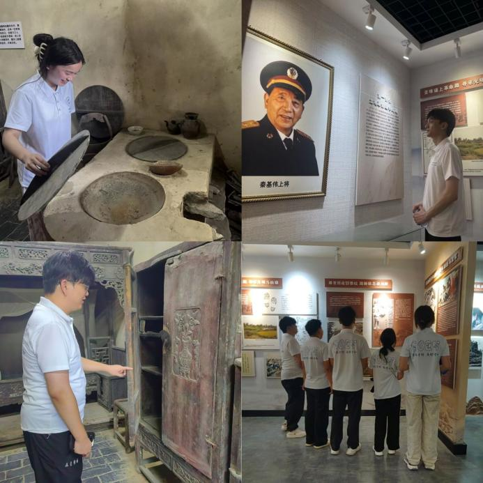 随后,实践团走进开国将军秦基伟故居。白墙灰瓦的院落内,斑驳的农具、简朴的生活用品,无声诉说着将军的农家出身;展柜中陈列的勋章、手稿则记录了他“一生征战,半生戍边”的戎马生涯。成员王浚哲凝视将军事迹展板时表示:“从农家子弟到国防部长,秦将军用一生诠释了何为‘朴诚勇毅’。”
