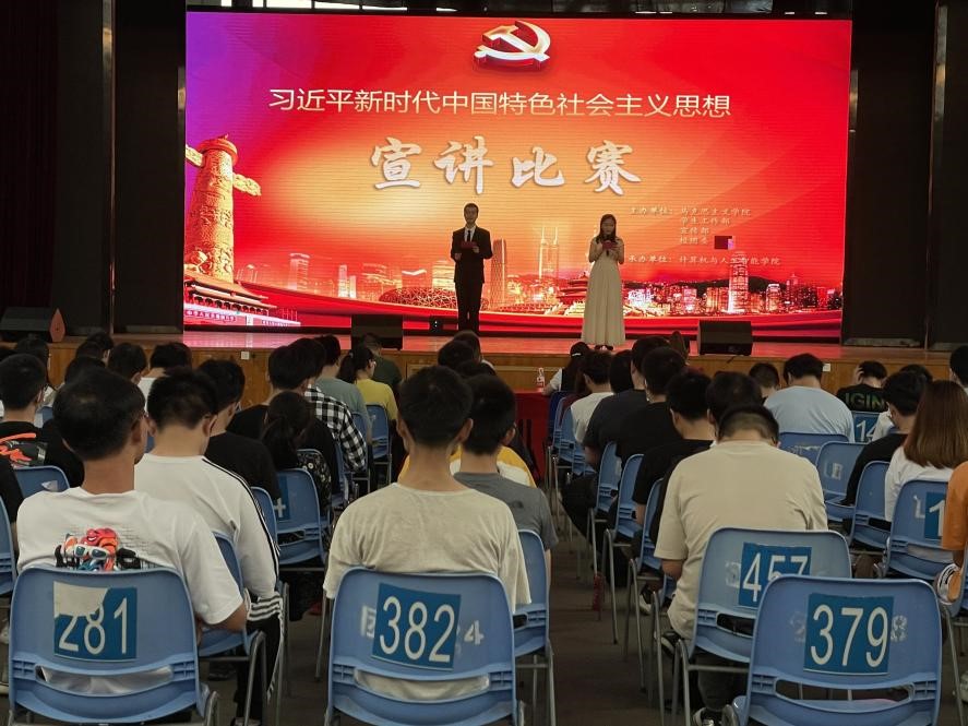 为热烈庆祝中国共产党成立100周年,6月3日,武汉纺织大学于阳光校区大学生活动中心演播厅举办“习近平新时代中国特色社会主义思想”宣讲比赛。本次大赛由马克思主义学院宣传部和学生工作部校团委主办,Betvictor亚洲 承办。