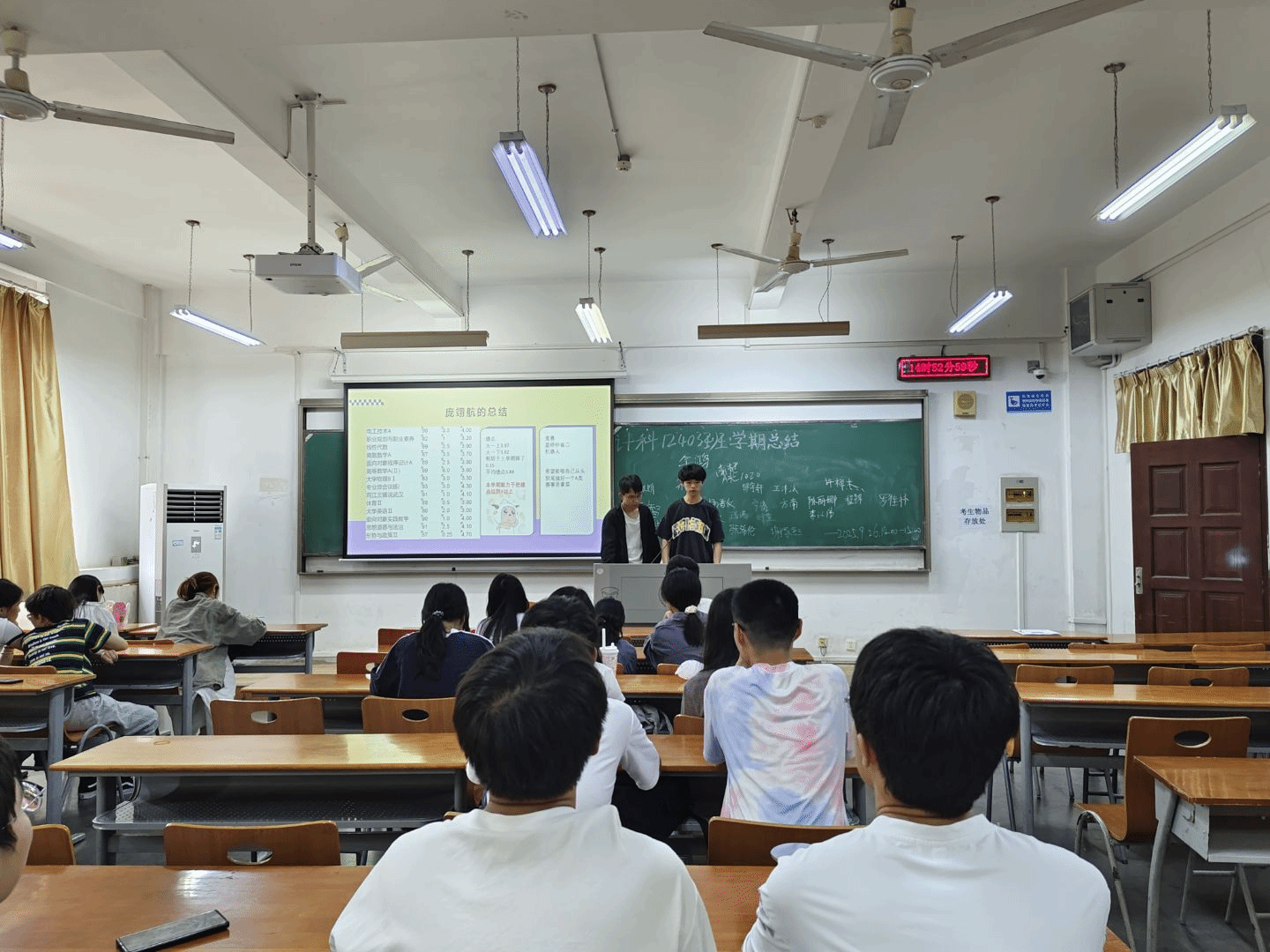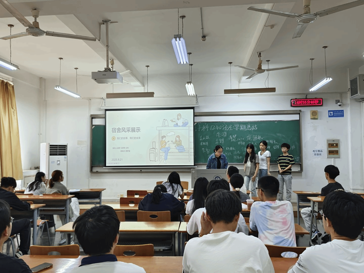 9月26日下午,计算机12403班在3号教学楼举行大一学年学期小结班会。班主任余锋、辅导员李港及全班同学共同参与,会议以宿舍为单位汇报上学期学习与生活情况,促进同学们了解不同寝室特点,互学互鉴。本次班会由班长庞翊航主持。