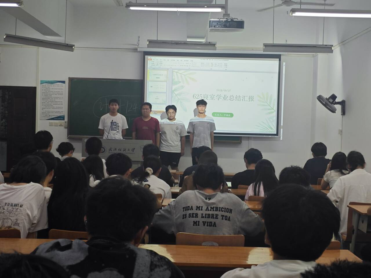 5A620寝室(成员秦晓冬、曾泳康、李景、汪涵)的汇报同样干货满满:寝室以“无人挂科、和谐友爱”为目标,搭建了清晰的分工协作机制——汪涵统筹日常事务,曾泳康牵头学术学习,李景负责营造良好氛围。学业方面,秦晓冬专业课表现亮眼,曾泳康在高数等学科上优势突出,李景与汪涵也顺利完成各项学业任务。展望未来,寝室成员将继续保持“前排学习”的优良传统,全力备战英语四级等重要考试;与此同时,秦晓冬计划参与更多志愿活动,曾泳康为就业与考研双方向蓄力,李景则全力冲刺更高分数,生动展现出“学业共进+个性发展”的寝室建设成效。