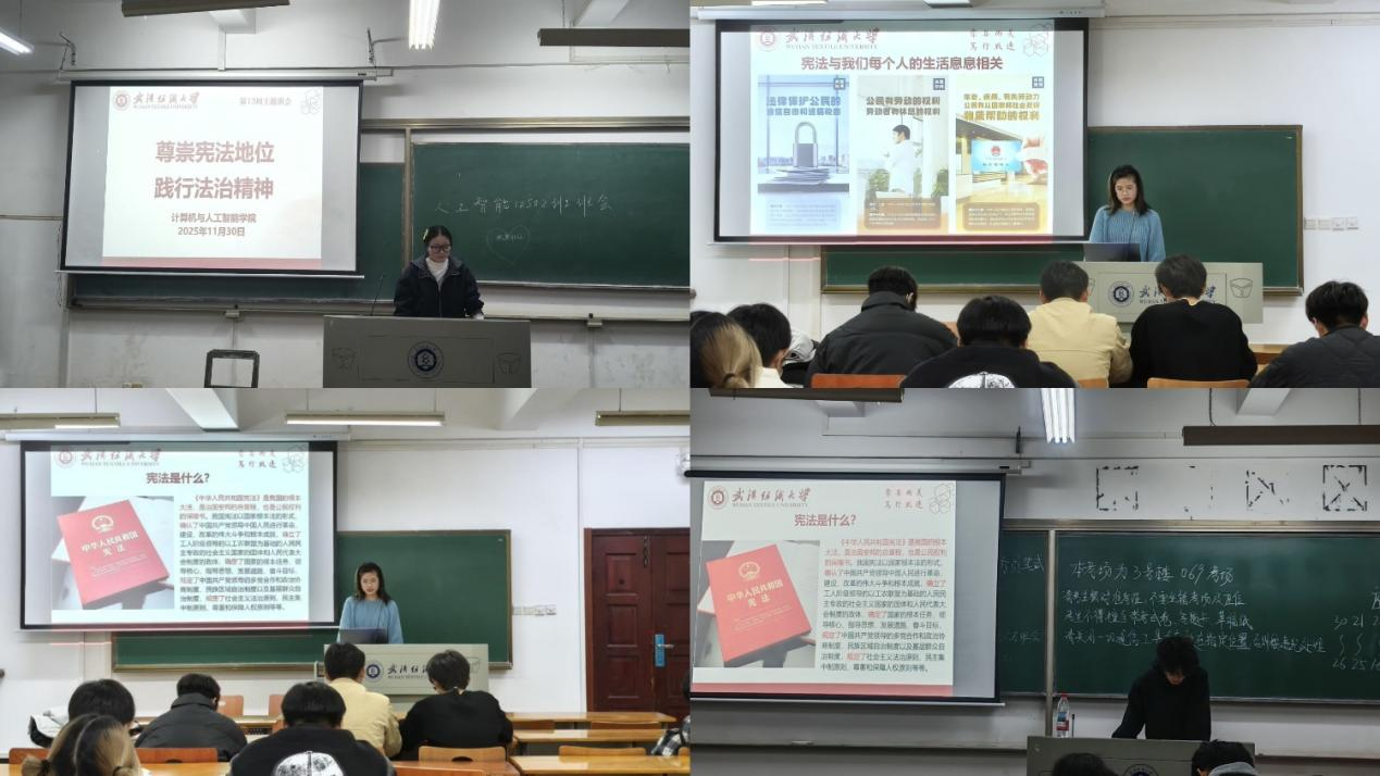 为深入学习贯彻宪法精神,增强青年学生的法治意识和法治素养,Betvictor亚洲 各班于 11 月 30 日在辅导员、班主任的组织下开展“尊崇宪法地位 践行法治精神”主题班会活动。活动以生动多样的形式引导学生树立正确的法治观念,推动宪法精神在校园落地生根。