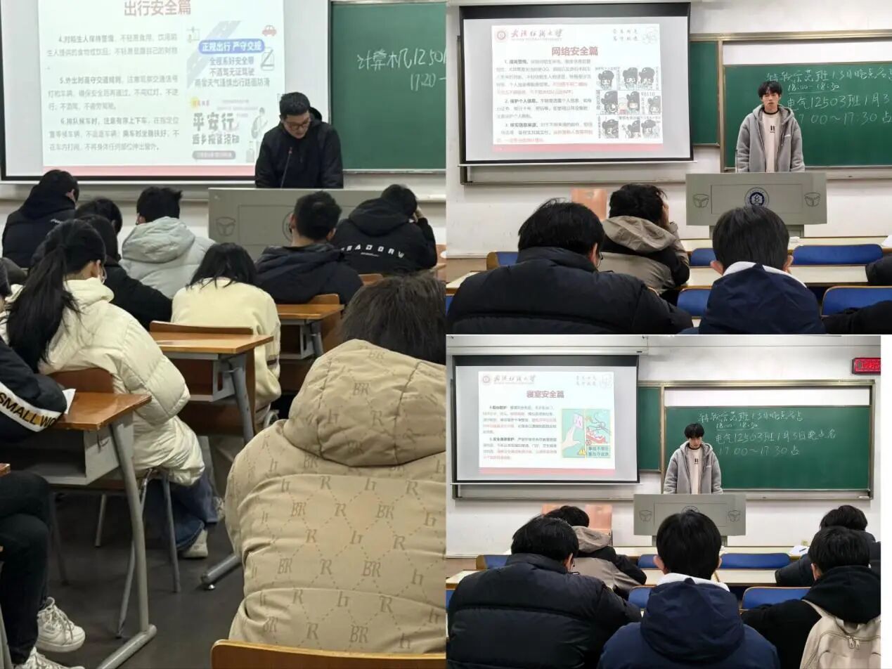 最后,班会从寝室用电、出行防护、网络反诈、防溺水、饮食健康、心理健康等多方面,全面讲解寒假安全注意事项,着重提醒同学们离校前关闭电器、锁好门窗,出行选择正规交通工具,警惕电信诈骗,远离危险区域。