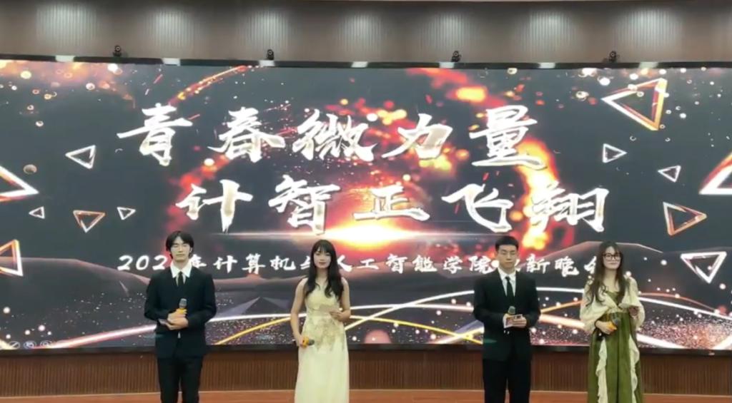 团委学生会主办,晚会全程通过“企业微信”与“哔哩哔哩”进行同步直播。本次晚会由乐宏奕、陈昌瑞、罗雅涵、李颖四位同学主持。