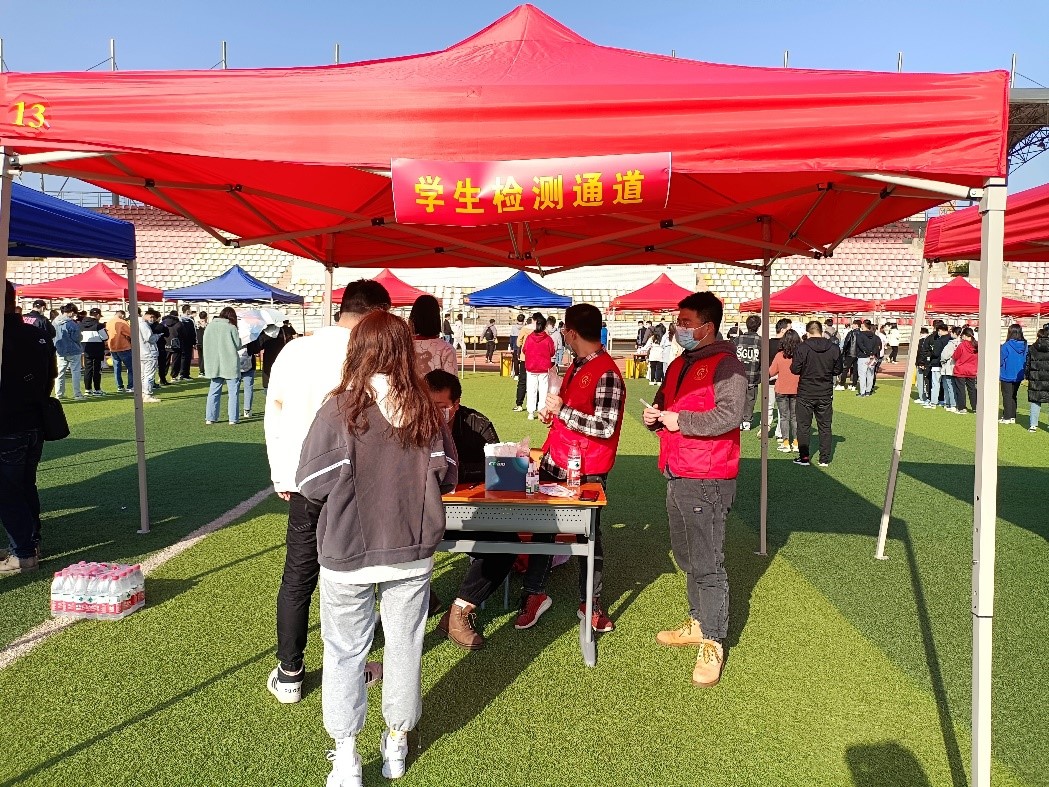 每值检测当天,志愿者们就根据学校的统一要求及安排提前到达自己的工作岗位待命,许多教职工、同学也早早来到核酸监测点,自觉地在各检测台前排队等候。检测期间,学院的老师们身先士卒,带领志愿者们在现场把控秩序,引导排队师生有序进行核酸检测。现场也有同学在完成核酸检测后也临时加入了志愿服务的队伍,阳光强烈,志愿者们互帮互助,将温暖传递。
