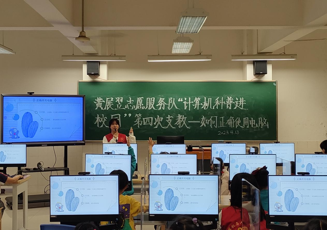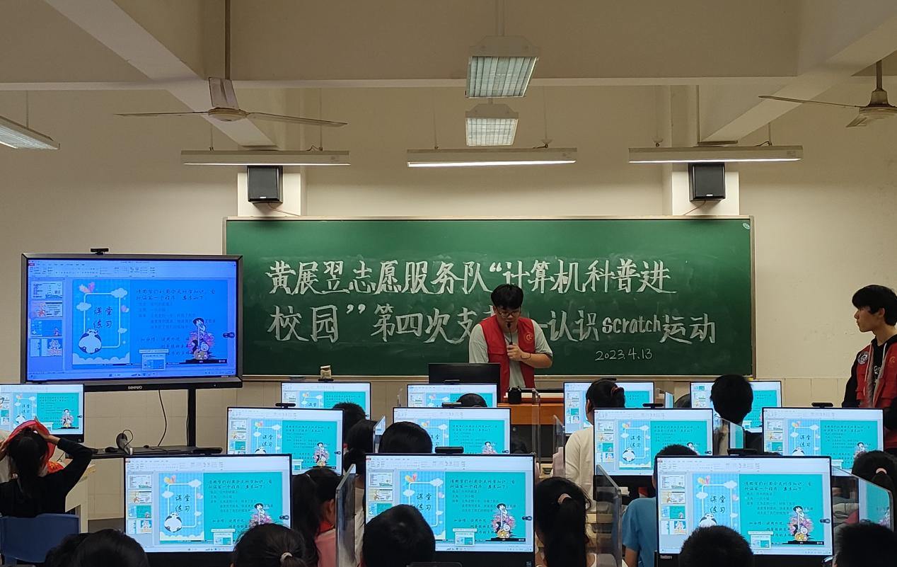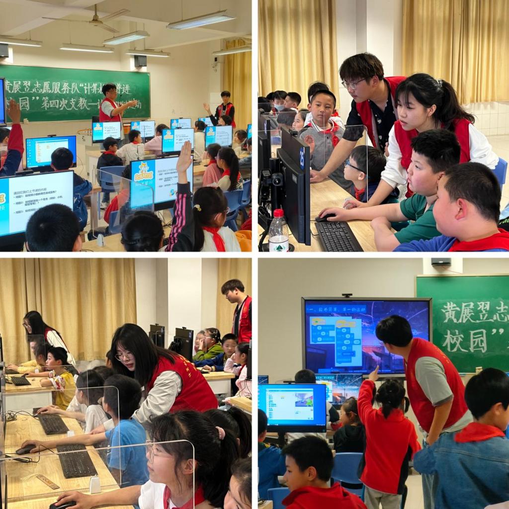 为促进“科普进校园”活动的进一步推动,培养中小学生计算机思维和编程能力,4月13日下午,武汉纺织大学黄展翌志愿服务队在武昌区石洞街学校开展了“计算机科普进校园”第四次授课活动。志愿服务队的同学们为石洞街学校的小学生带来了有趣的计算机知识科普和编程教学。