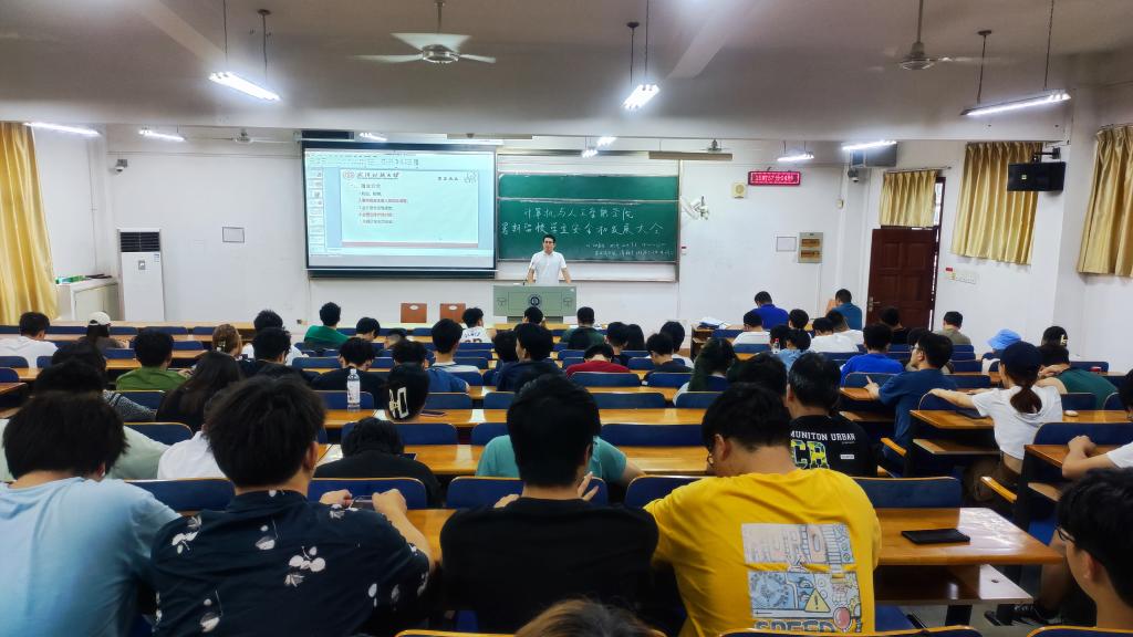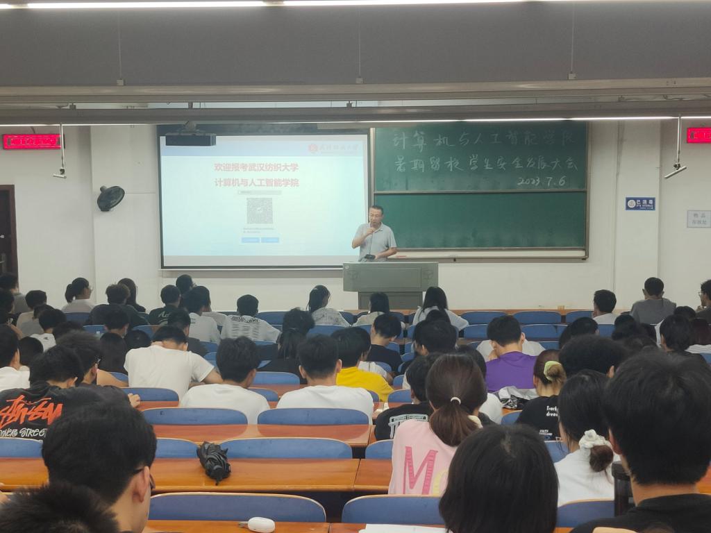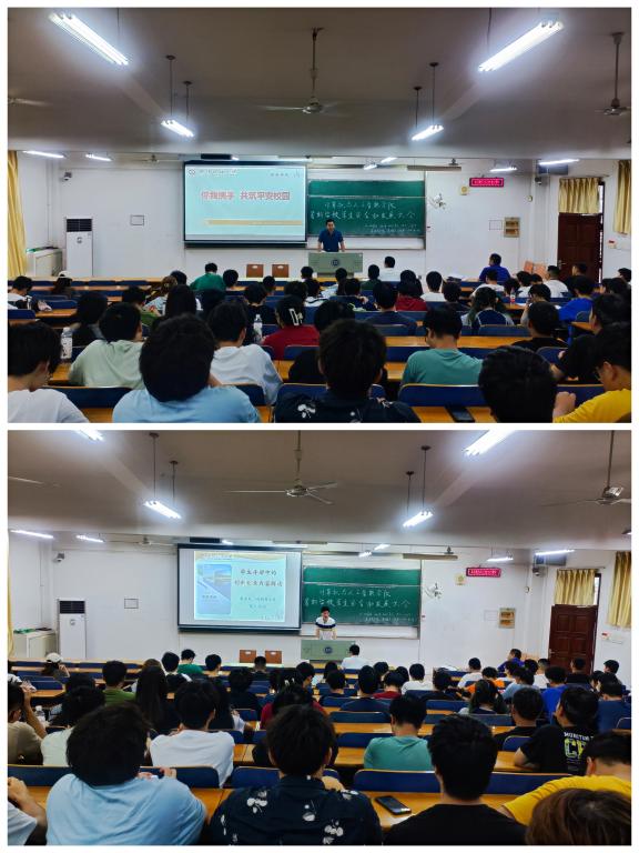 会上,马绪亮以“你我携手,共筑平安校园”为题开展了安全教育讲座,他从“安全”的定义引出以人为本、生命至上的深刻意蕴,结合数据和案例生动地阐述了提高安全防范意识的重要性。分别从暑期季节性安全防范、交通安全、财产安全、消防安全、实验室安全、饮食安全、宿舍安全、政治安全八个方面全方位、多方面开展了深度安全教育讲座。并温馨提示学生就医、心理援助、保卫救助、值班服务的联系方式和途径,畅通学生寻求帮助的渠道,给予学生全方位的关心关爱。孙杰就大学生创新创业和科技竞赛进行了详细解读。他结合学生手册,从大学生创新创业、参加学科竞赛与综合测评的关系、与奖学金的评审、与评优评先和学位补授的关系进行了深刻地阐述,并分类介绍了各类赛事,鼓励同学们踊跃参加到各类赛事中来。