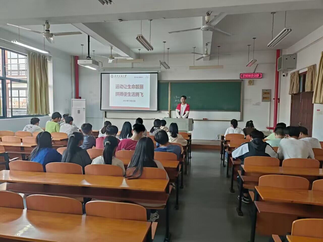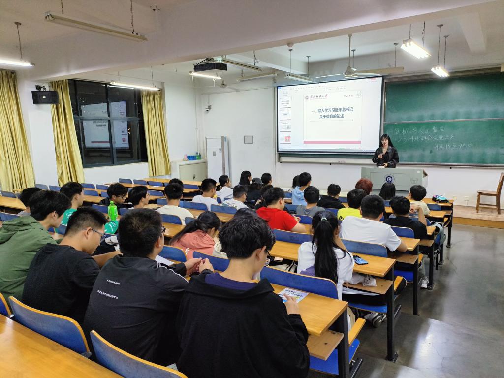 随后,辅导员向同学们介绍了学校开展各种体育活动,号召同学老师们积极参加,以丰富学生们的学习生活,锻炼学生们的体魄,引导学生重视体育锻炼。