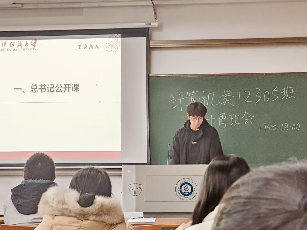 班会上,辅导员首先进行晚点名工作,逐一清查学生到会情况,对未按时参会学生进行联系确认。随后辅导员向同学们讲述了习近平总书记年轻时求学的故事以及乐于学习、勤于学习、善于学习的由来,鼓励同学们积极学习,不断进步。