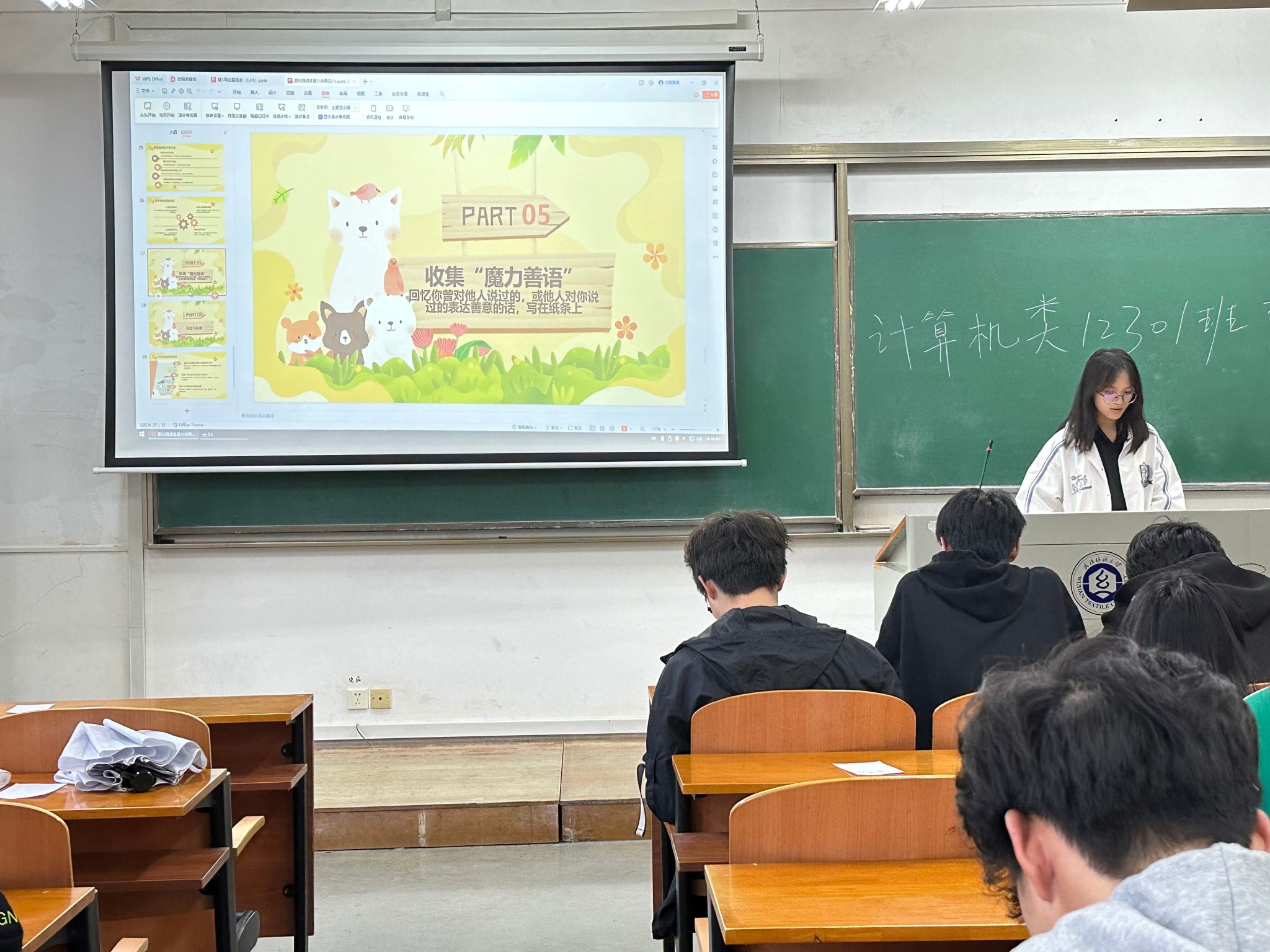 班会伊始,辅导员首先清点学生参会情况,对未返校学生逐一进行联系确认,确保学生安全。班主任向同学们播放了《走出心中的洞穴》动画短片,动画短片讲述了小兔子勇于走出敏感封闭的自我,承认自己不那么全知全能,相信自己即便不那么优秀也能够与他人建立良好的关系,从而拥抱自己与整个世界的故事。短片过后,各班同学结合自己的生活经历,讲述了自己曾经出现过的精神内耗等现象,并表达了自己的感受。随后,在各班心理委员的组织下,班级同学们开展了各自的心理活动,通过小游戏的形式放松自己的心情,舒缓心中的压力。