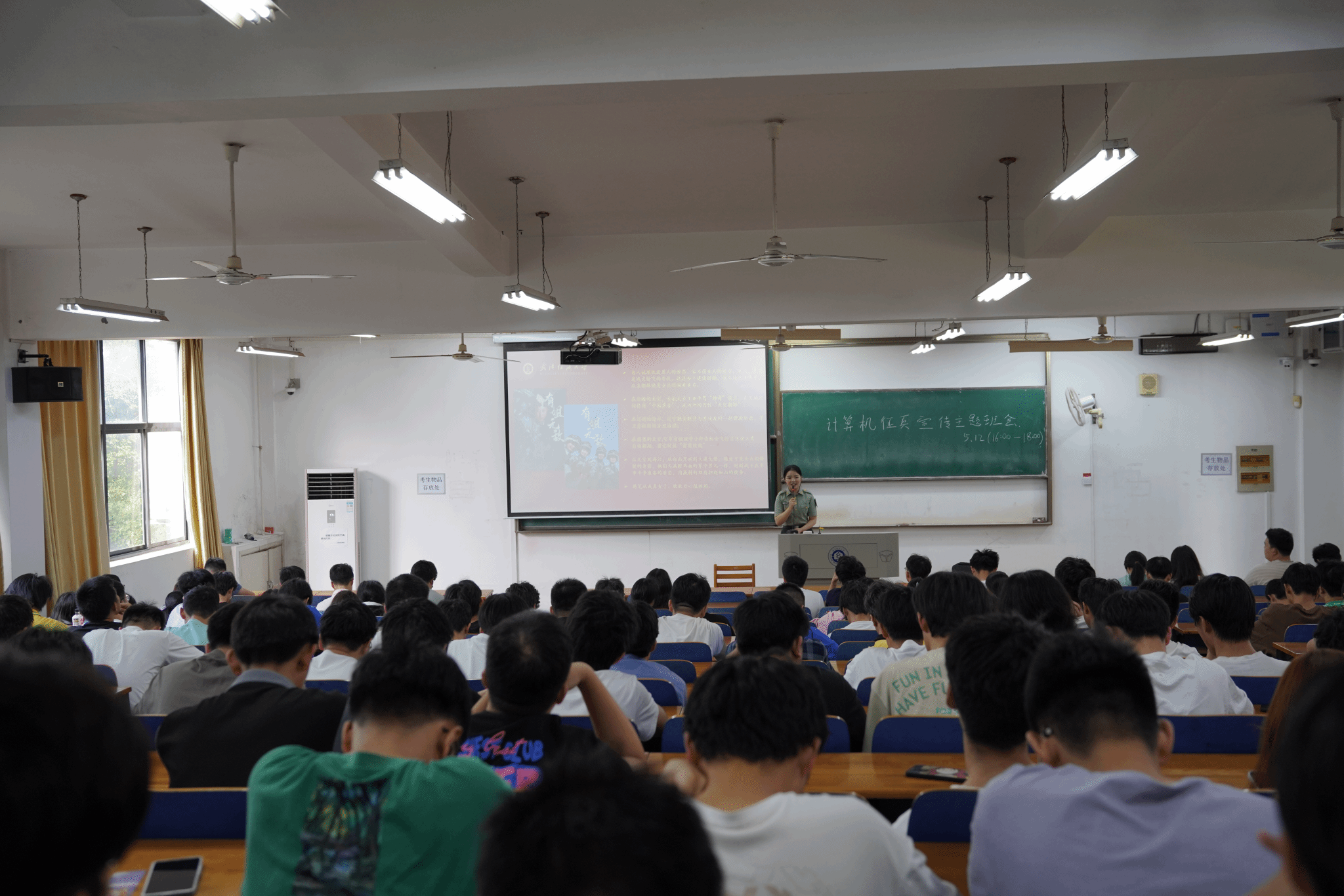 各年级辅导员从应征入伍基本条件、入伍流程、大学生参军入伍享受政策及大学生入伍优势等几个方面进行详细的政策解读,确保同学们对大学生征兵工作有一个全面的认识。