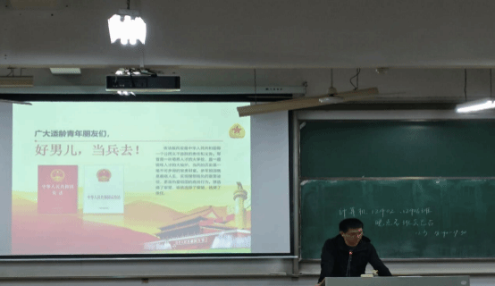 随后,班主任为同学们介绍了大学生征兵的详细要求,专属荣誉等方面,展示了部队生活的方方面面,强调参军入伍不仅能锻炼同学们的体能,也能铸就坚韧的意志,在后期的学习生活中能起到巨大的作用,号召同学们为国家添砖加瓦,争做祖国的栋梁。