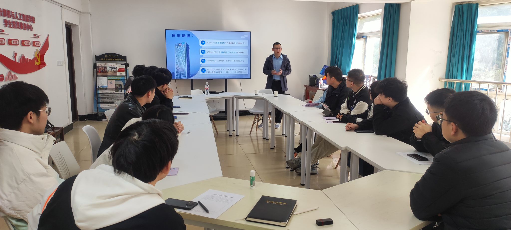 本次宣讲会气氛热烈,学生们就职业发展、求职技巧等方面积极提问,张经理一一进行解答。辅导员也对学生们的求职意向进行了深入了解,并表示将积极协助学生与恒生电子进行对接。期待更多优秀人才加入恒生电子,共同助力金融科技发展!