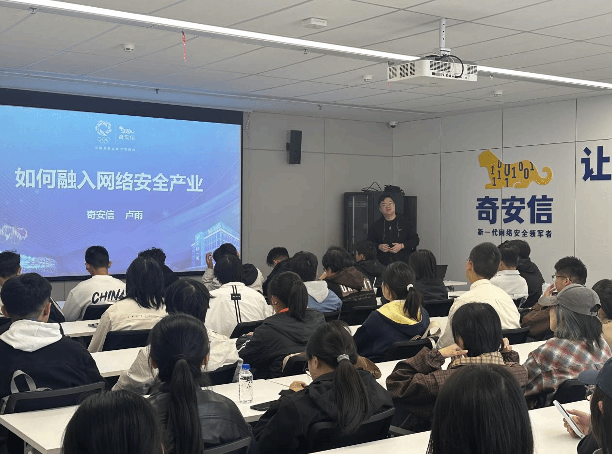 活动伊始,奇安信集团卢雨为同学们带来了题为“如何融入网络安全专业”的专题讲座。卢雨从当前网络安全的宏观形势切入,强调了网络安全在国家战略中的重要地位。他结合奇安信在关键信息基础设施防护等领域的实践经验,向同学们生动描绘了网络安全领域的广阔前景。“没有网络安全就没有国家安全。每一个网络用户都需要认识到这一点,切实提高安全意识。”卢雨在讲座中强调。他鼓励同学们尽早树立正确的安全观,培养专业兴趣和技术能力,为成为优秀的网络安全人才打下基础。讲座现场气氛热烈,同学们踊跃提问,专家耐心解答。互动环节中,新生们围绕专业学习、技术方向和职业规划等问题与专家进行了深入交流。
