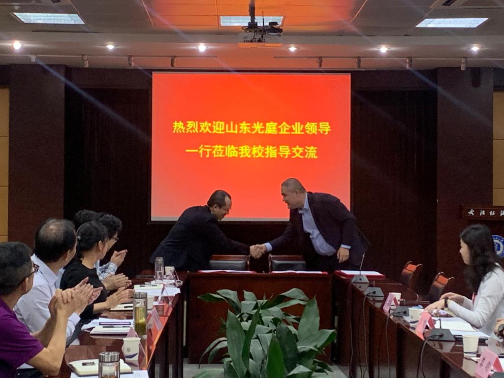 冯军对山东光庭信息技术有限公司领导一行来校调研表示热烈欢迎,并介绍了学校发展历程和科研现状。他强调,武汉纺织大学历来重视科技成果转化,山东光庭信息技术有限公司与我校前期在研发、人才等方面有较多合作,希望通过双方进一步拓宽合作领域,发挥学校在智能装备研究的力量,同时也结合在学校在纺织服装等学科的特色。在智能感知技术的产品研发和产品推广方面探索出一条发展路径,实现双赢。