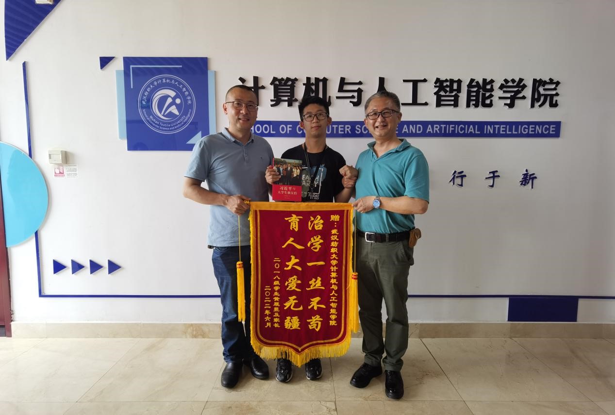 6月1日上午,在崇真楼(南楼)A4008会议室,Betvictor亚洲 2022届软件工程专业毕业生黄展翌和他的父亲向学院赠送了写有“治学一丝不苟,育人大爱无疆”的锦旗,以此感谢学校、学院和师生们四年来对黄展翌的照顾与帮助。学工部副部长夏贤辉、校团委副书记侯庆,学院党委书记晏伟,副院长魏雄、彭涛,2018级辅导员廖龙、蔡文婷等参加赠送仪式。会议由学院党委副书记向涛主持。