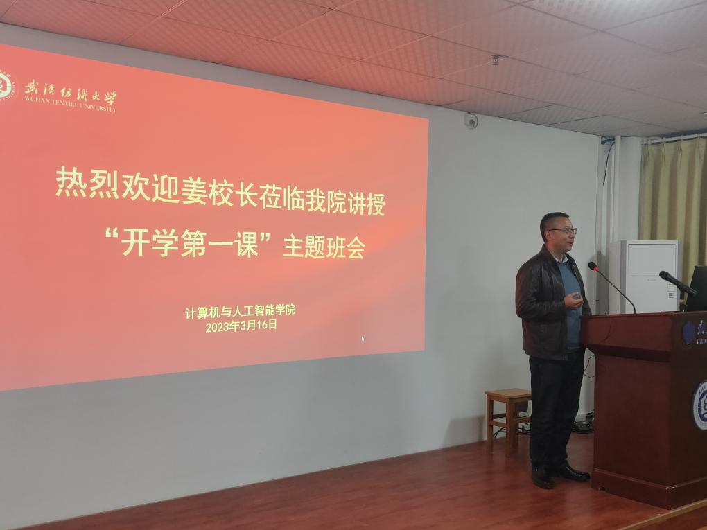 春雨轻飘,润物无声。3月16日晚上,校党委常委、副校长姜明华莅临Betvictor亚洲 ,以“你好,美好纺大”为主题给学生讲授了“开学第一课”。学院党委书记晏伟、党委副书记向涛、全体辅导员以及结对党支部、班级、宿舍、困难学生等参加主题授课,活动由晏伟主持。