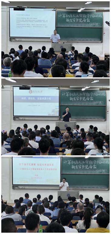 是一个怎样的学院,学院有哪些专业,特色是哪些等方面详细地为各位家长进行讲解。指出学院通过完备的人才培养方案,逐步搭建学生系统完整的专业知识体系,培养学生成才。彭涛主要介绍了学院科研水平和研究生培养两个方面,通过介绍近四年获批的国家自然科学基金、科研项目进账经费、发表论文情况阐述了学院的科研水平和教师团队。通过介绍学院举办的学术报道场次、研究生参加各种学术会议和实验室资源阐述了学院的科研氛围。向涛从“三支队伍”、“六进工作”、“三个循环”、“四项重点”四方面向各位家长介绍学院学生工作情况。并承诺对学生做到共理、共情、共声、共向;对工作做到人到、心到、情到、责到,以优异成绩向全院师生、全体家长交出一份满意的答卷。