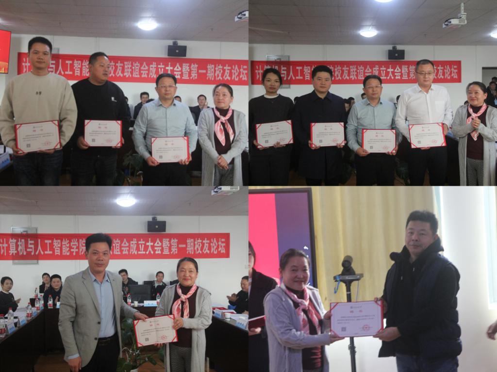 校友联谊会揭牌仪式,并由胡新荣院长代表学校校友总会颁发校友联谊会会长、副会长、秘书长、副秘书长聘书。