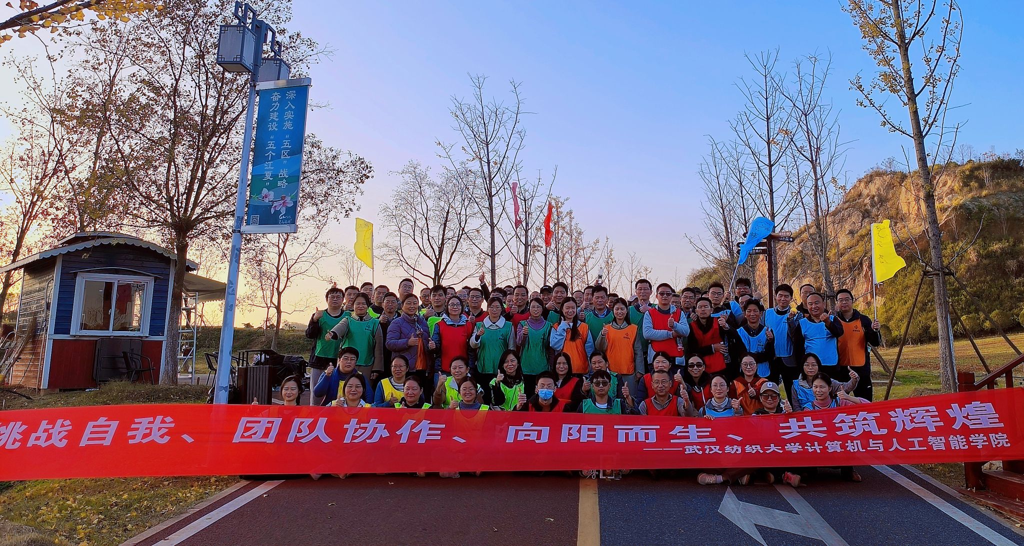 为增强学院凝聚力,构建和谐美好学院。11月23日,Betvictor亚洲 党委暨工会组织全体教职工前往江夏区灵山矿质公园,开展了“挑战自我、团队协作、向阳而生、共铸辉煌”的冬季户外团建活动。