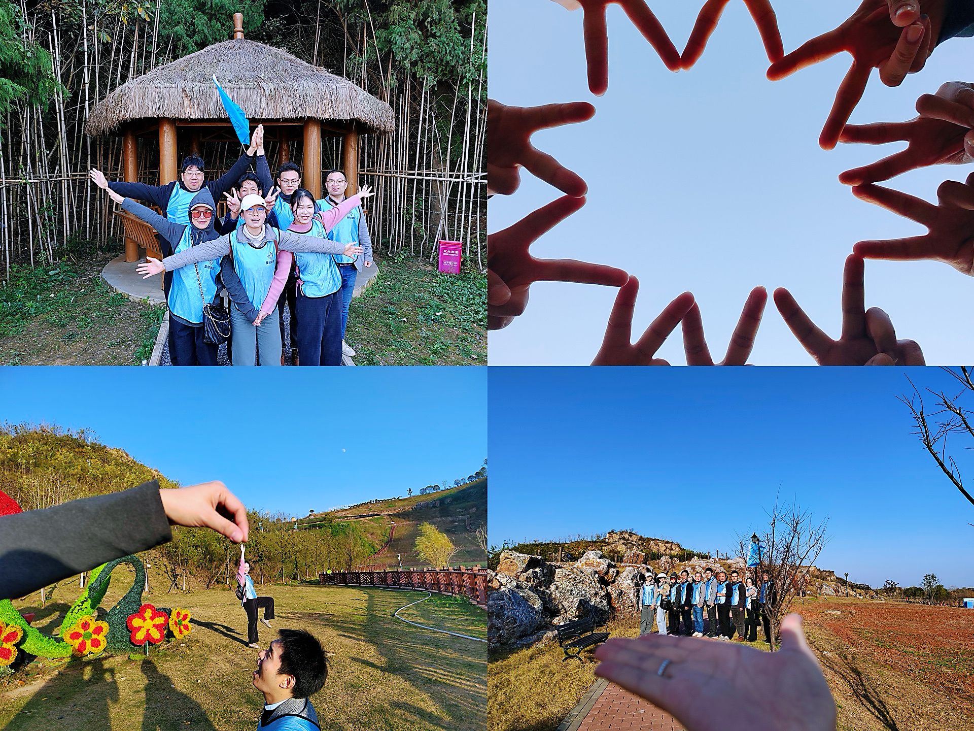 独具挑战性的团队合作任务开启,需要团队内每位成员的积极参与勇敢创新。各队进行了具体分工,有人负责解读任务书,有人负责寻找关键打卡景点,有人负责完成任务挑战,有人负责拍照上传......大家一边徒步欣赏灵山矿质公园的自然风光,一边打卡完成规定任务,欢声笑语回荡在园内,工作中的压力得到尽情释放,平日里难得相聚的老师间有了更多的交流与了解。