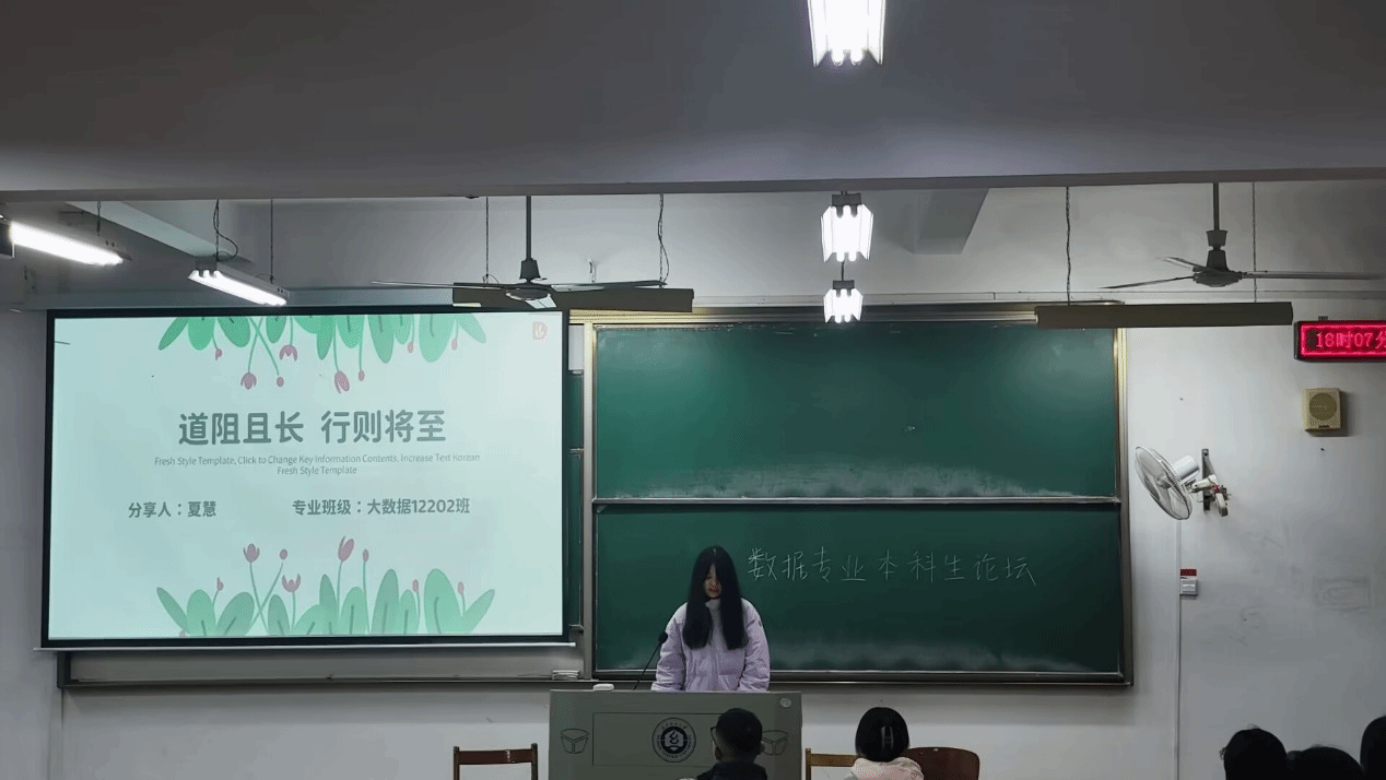 夏慧以“道阻且长,行则将至”为题,详细阐明了确定学习目标的重要性以及如何确定自己的学习目标,围绕确定学习目标的步骤,向同学们介绍了几种实现学习目标的方法,并着重介绍了学习目标与持续努力的关系。