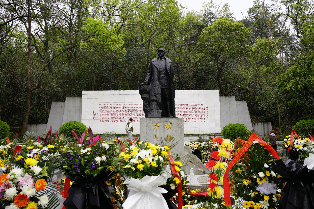 “清明时节雨纷纷,路上行人欲断魂”,参观活动结束后,大家怀着崇敬的心情,一同前往项英同志的雕像前,环绕着这座庄重的纪念碑,深情瞻仰,鞠躬默哀献花,表达了对这位伟大革命家的无限敬意与缅怀之情。
