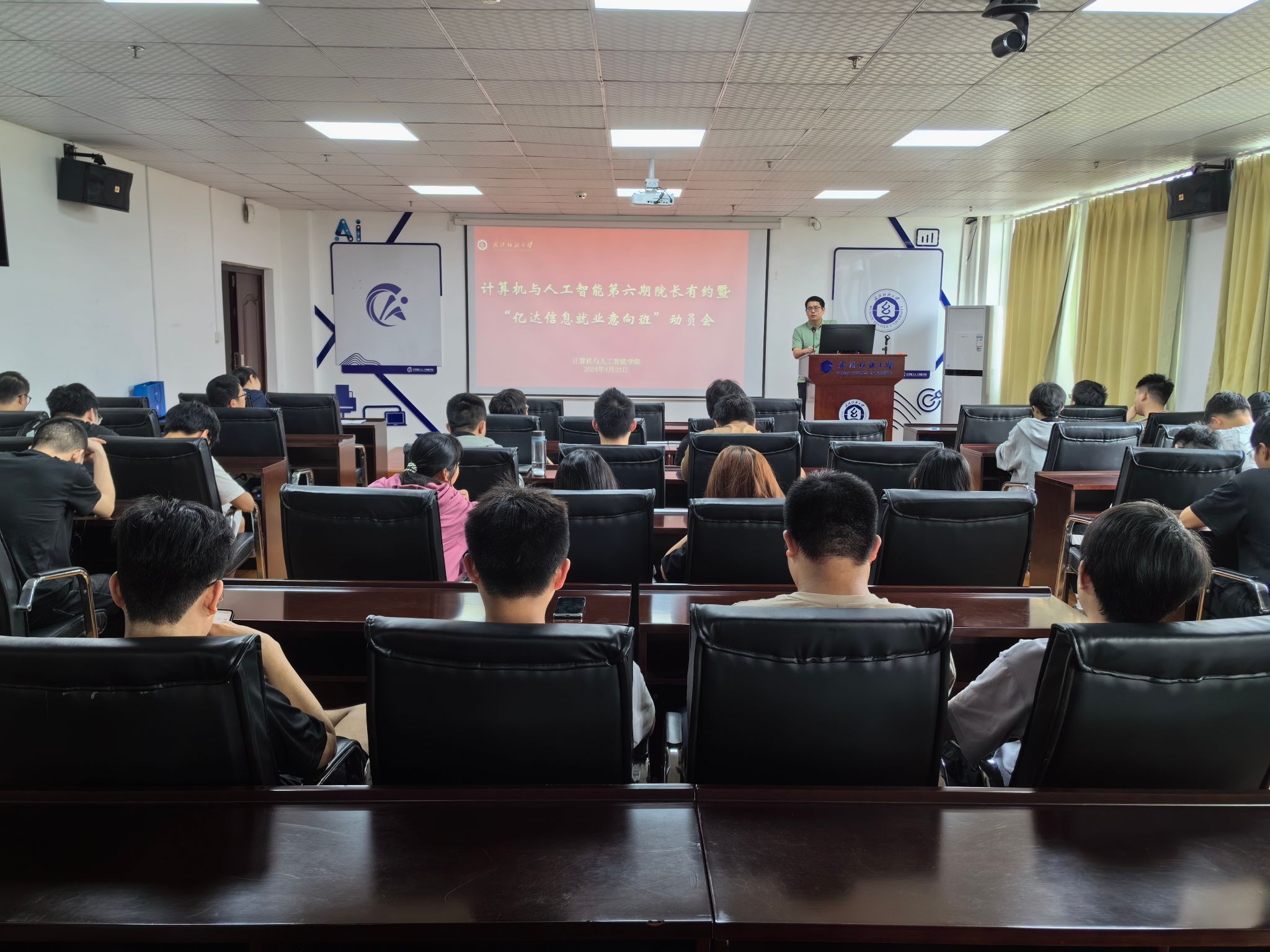 最后,魏雄为同学们讲解了动员就业的原因,魏雄指出后疫情时代,经济环境受到一定影响,部分IT企业在裁员,我们首先要生存下来,不要挑挑拣拣,先站稳脚跟,再谋求发展。向涛强调本次培训班是学院为大家提供的跟专业相关的工作的一次绝佳机会,希望大家能抓住机会,先有一份工作,学习知识技能,再谋求更好的发展。