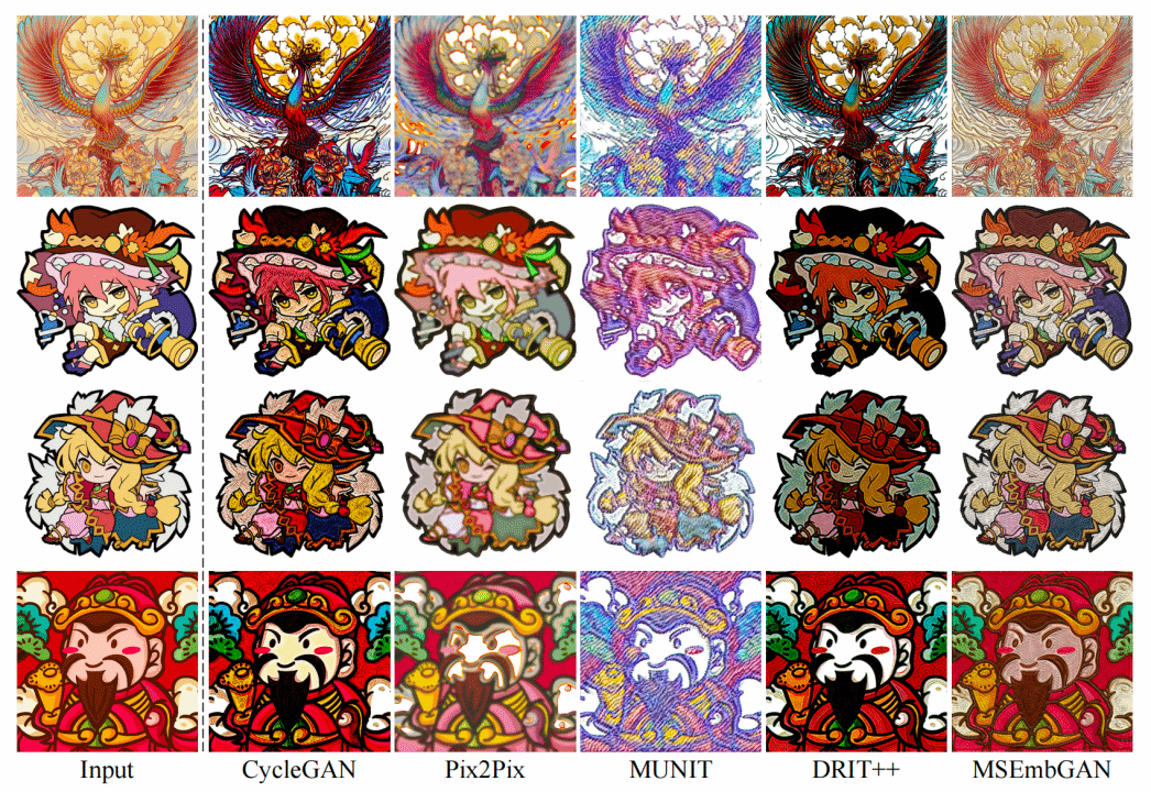 *MSEmbGAN和其他四种风格转移方法生成的刺绣图片比较*