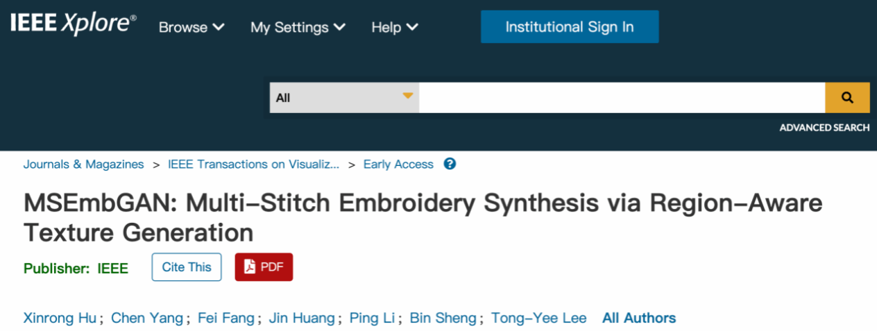 针对于此,Betvictor亚洲 胡新荣课题组提出了一种多缝线刺绣生成对抗网络模型 MSEmbGAN。MSEmbGAN 提高了刺绣中纹理真实度和色彩保真度等关键方面的精度,成为首个基于 CNN 成功完成刺绣预测特征的生成对抗网络模型。研究成果MSEmbGAN: Multi-Stitch Embroidery Synthesis via Region-Aware Texture Generation被 IEEE Transactions on Visualization and Computer Graphics (TVCG) 录用,该论文的第一单位为武汉纺织大学,第一作者为Betvictor亚洲 胡新荣教授。TVCG 是计算机可视化领域的顶级期刊,是中科院一区Top期刊,被中国计算机学会 (CCF) 列为 A 类期刊。