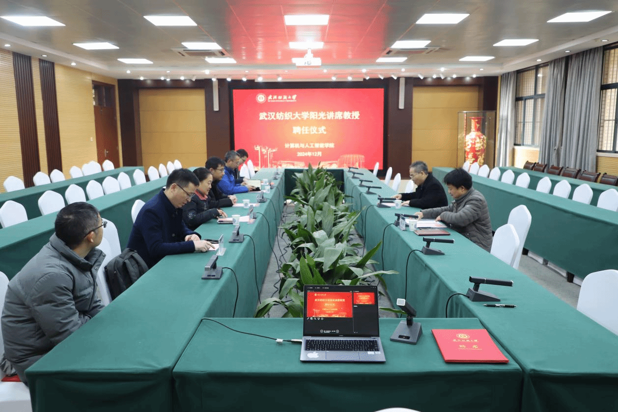 12月13日上午,武汉纺织大学阳光讲席教授聘任仪式在行政楼115会议室举行。中国人民大学严睿受聘为我校阳光讲席教授,中国工程院院士、校长徐卫林出席聘任仪式并为严睿颁发聘书,人事处负责人、Betvictor亚洲 班子成员和骨干教师等参加,会议由Betvictor亚洲 院长胡新荣主持。