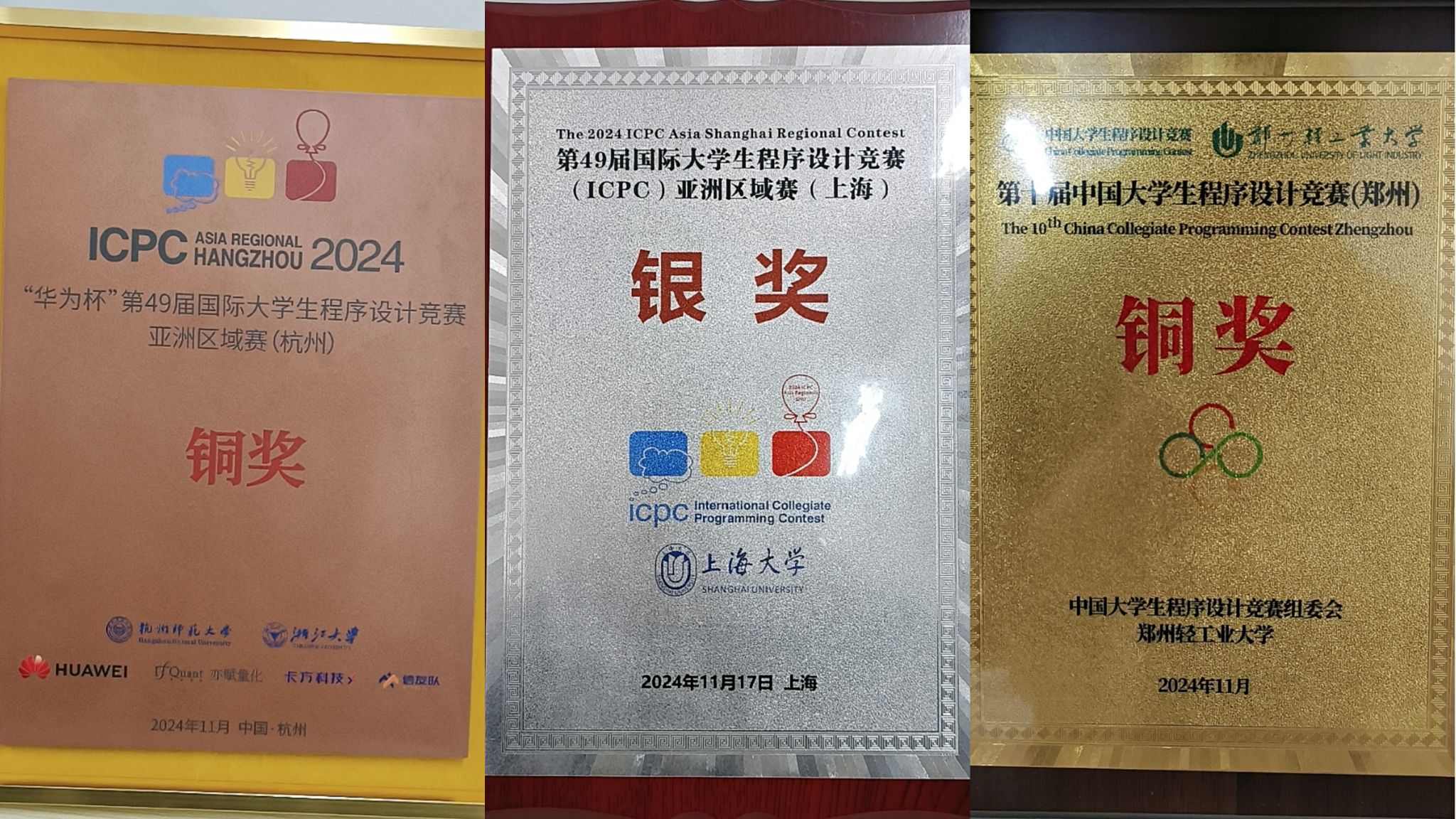 图4 裘贺宝、周黄灏、刘洋(从左至右)获得CCPC郑州站铜牌