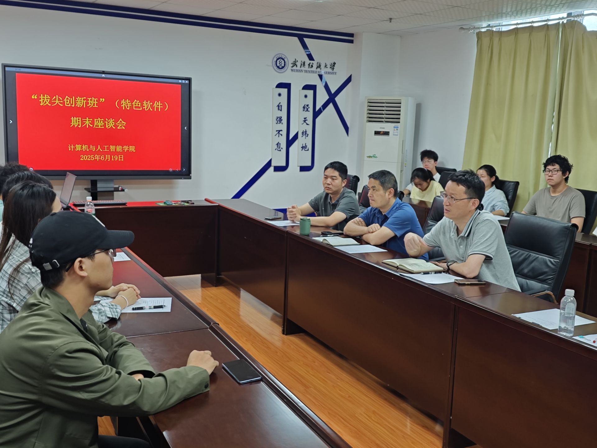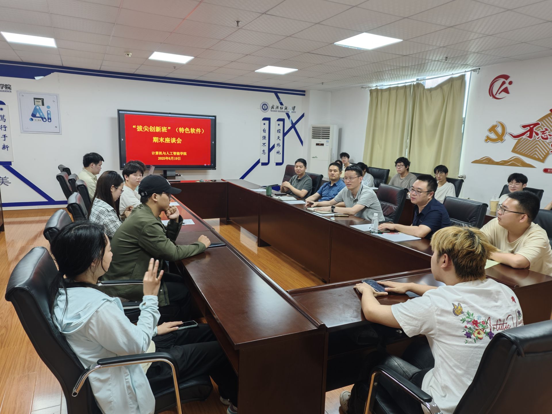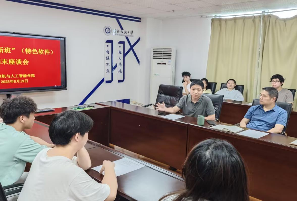 2025年6月19日上午10时,Betvictor亚洲 “拔尖创新班(特色软件)”在实训楼A4033会议室举行了期末学习座谈会。学院副院长彭涛教授、软件工程系主任叶鹏副教授、教师代表汤俊伟老师以及2024级“拔尖创新班”全体同学参加了本次座谈活动。座谈会由“拔尖创新班”负责人王帮超老师主持。