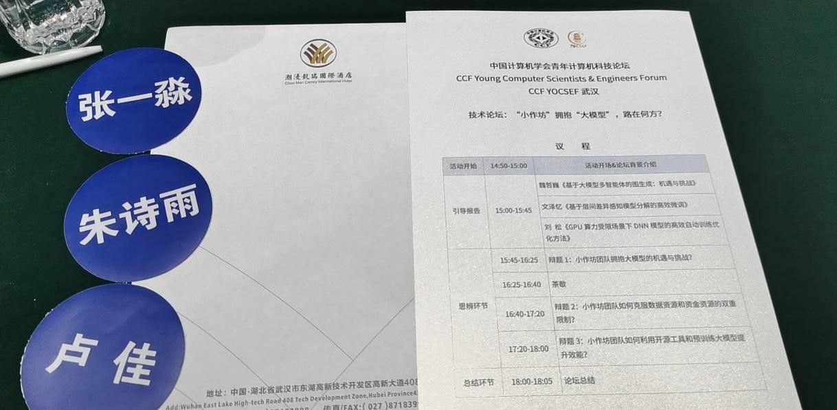 2024年9月25日下午,CCF YOCSEF武汉在武汉市潮漫凯瑞国际酒店成功举办了主题为“‘小作坊’拥抱‘大模型’-路在何方?”的观点论坛。本次论坛由中国计算机学会(CCF)主办,CCF YOCSEF武汉学术委员会(YOCSEF武汉)承办,华中科技大学、华中师范大学和中国地质大学(武汉)协办。论坛由YOCSEF武汉AC委员汪蓉(华清远见)和裴羽尘(华中师范大学)担任执行主席,线上主席由YOCSEF武汉AC委员王玉龙(华中农业大学)和刘芳(武汉城市学院)担任。